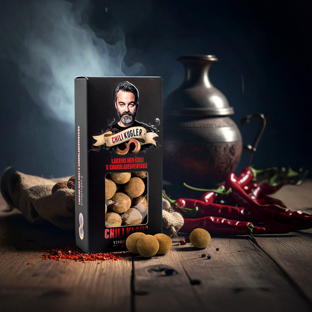 En stærkere klassiker fra Chili Klaus: chilikugler v. 9 kombinerer lakrids, chokolade og chili med tydelig varme. Vindstyrke 9/15 giver dig en oplevelse med kant — men stadig balance.